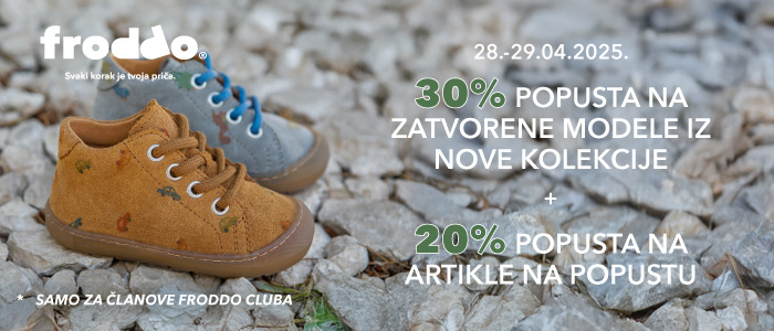 *Popust se ne odnosi na kišni program, papuče, platnene tenisice, sandale i Froddalice hodalice.